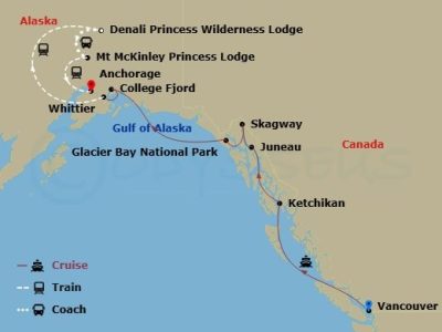 Vancouver | Ketchikan | Juneau | Skagway | Hubbab Glacier | College Fjord | Anchorage | Denali NP | Anchorage